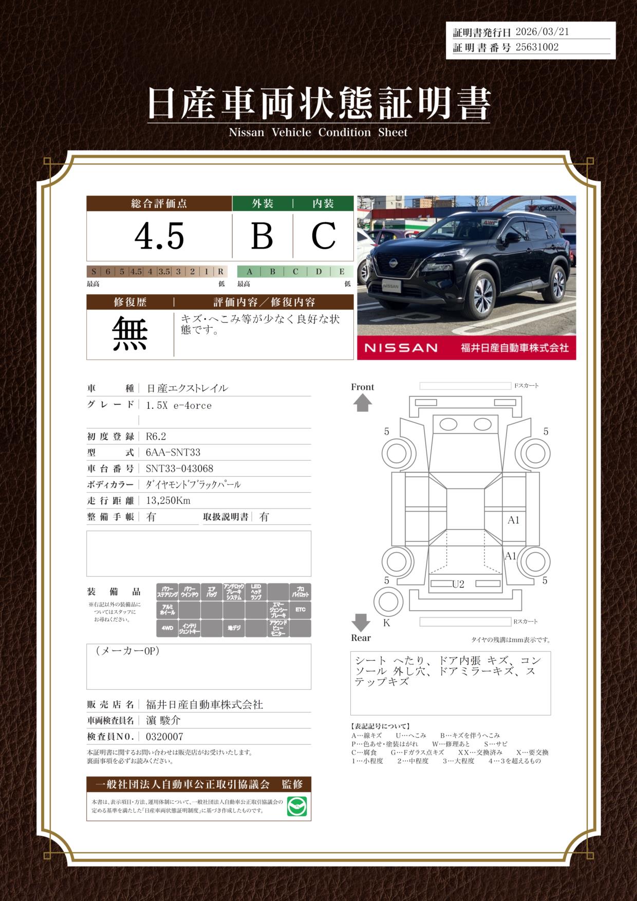 「車両状態証明書」は、査定協会監修のプロの検査員が公正かつ確かな基準で検査した”安心の証”です。