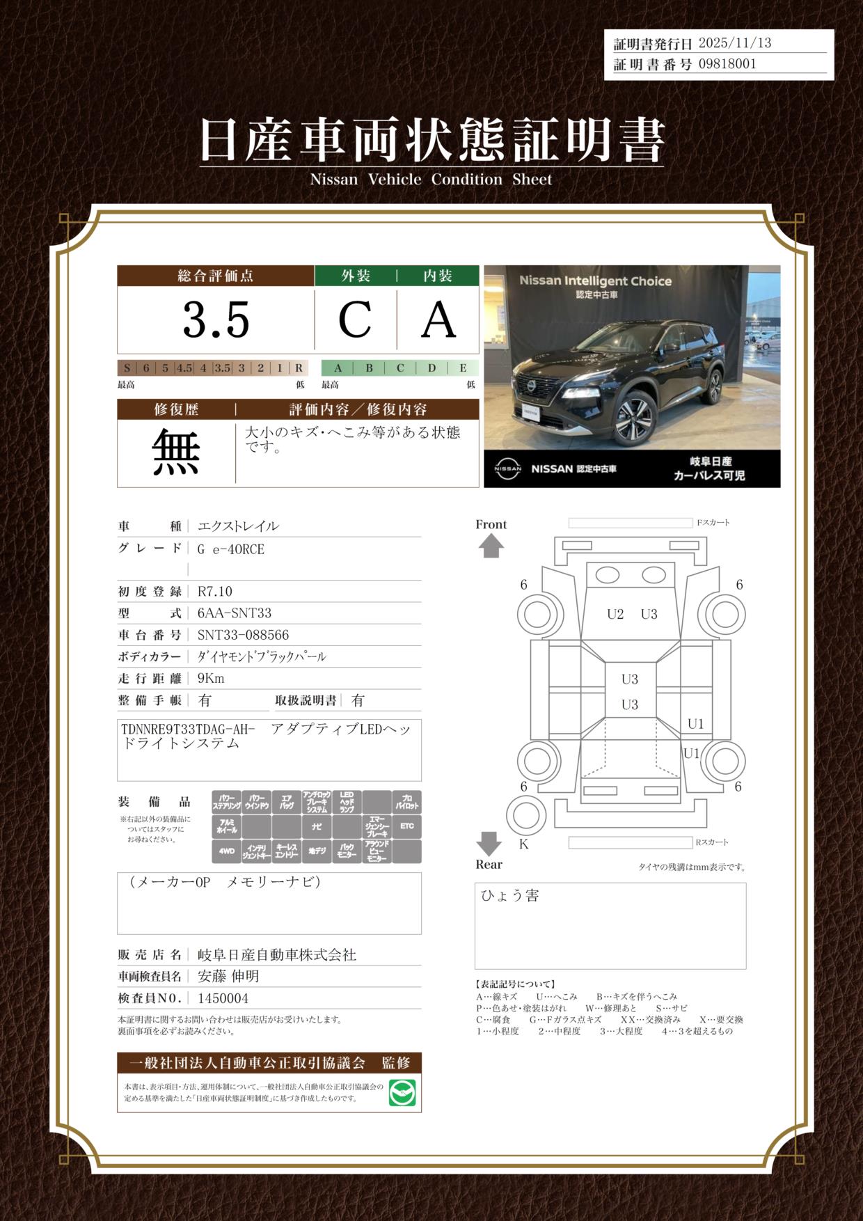 エクストレイル 1500cc 1.5 G e-4ORCE 4WD 雹害車 メーカーNCナビ プロパイロット