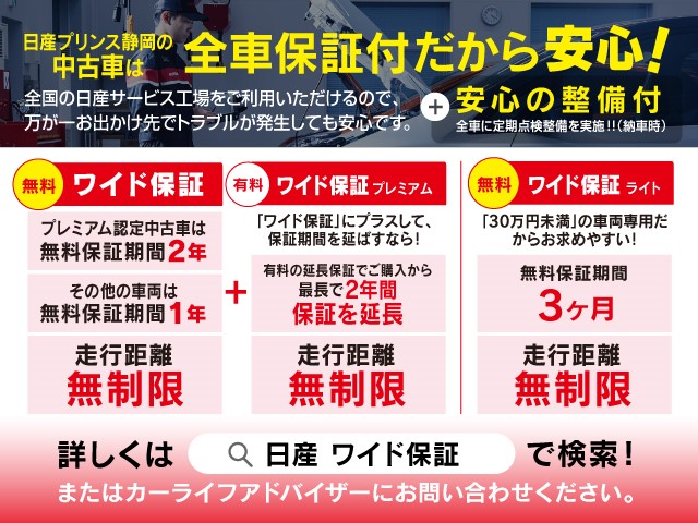 ■ワイド保証 保証期間:2年(走行距離無制限)