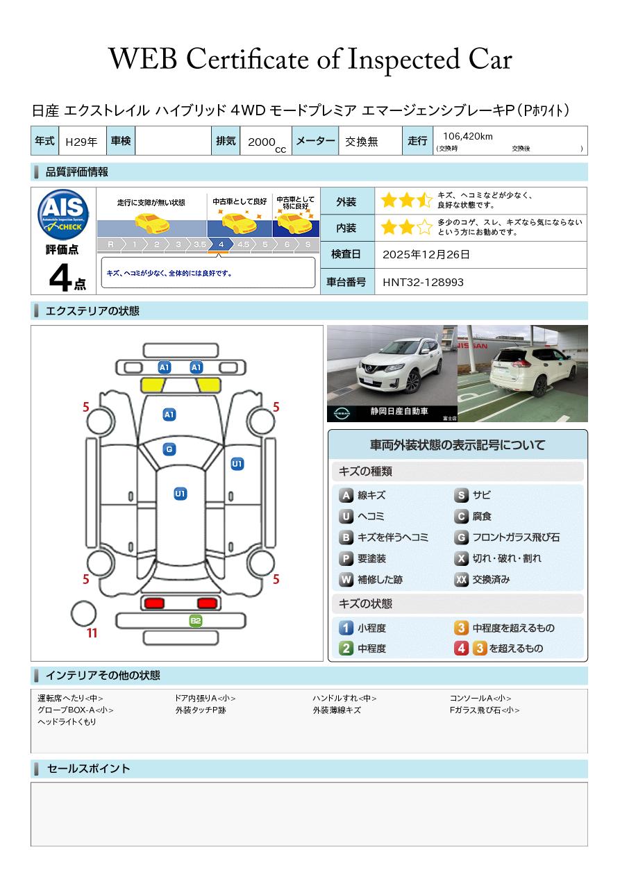 エクストレイル 2000cc 2.0 モード・プレミア ハイブリッド エマージェンシーブレーキパッケージ 4WD アラウンドビューモニター