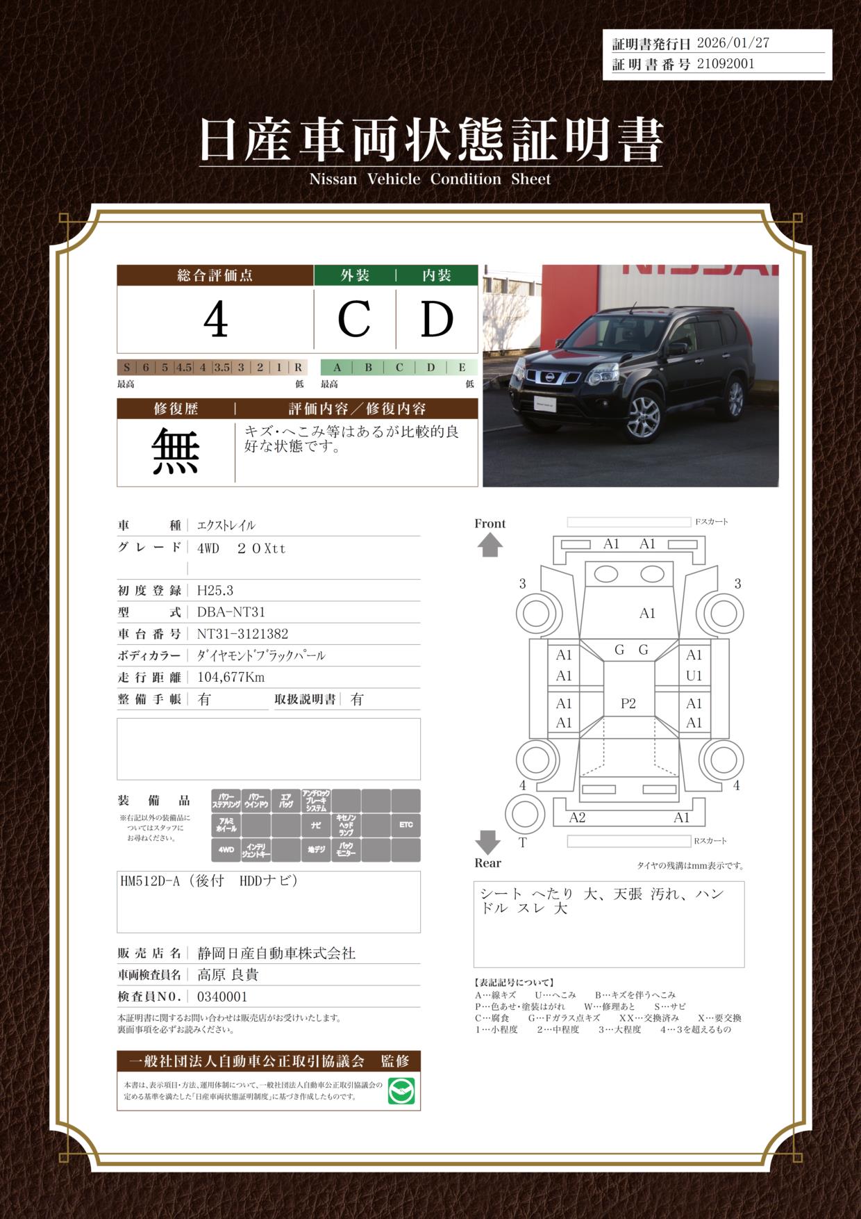 エクストレイル 2000cc 2.0 20Xtt 4WD 純正HDDナビ シートヒーター