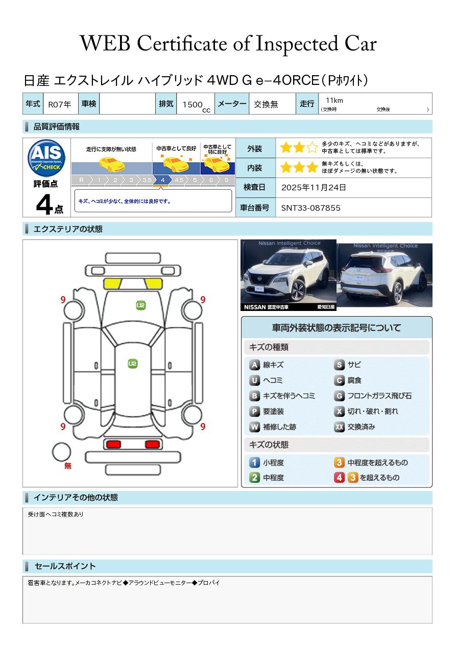 雹害車となります。メーカコネクトナビ◆アラウンドビューモニター◆プロパイロット◆オートバックドア◆LEDライト◆前席シートヒーター◆インテリジェントルームミラー◆