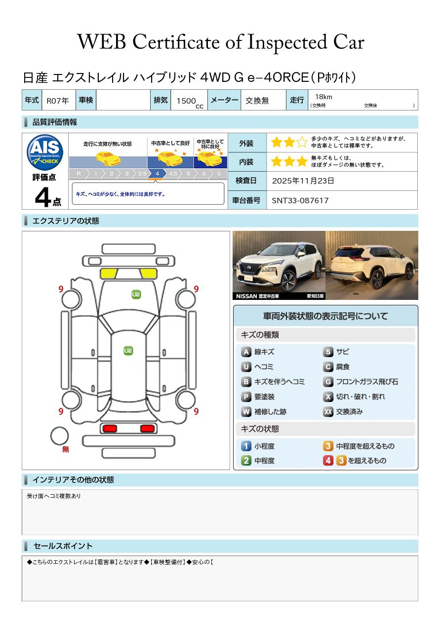 エクストレイル 1500cc 1.5 G e-4ORCE 4WD 雹害 車メーカコネクトナビ