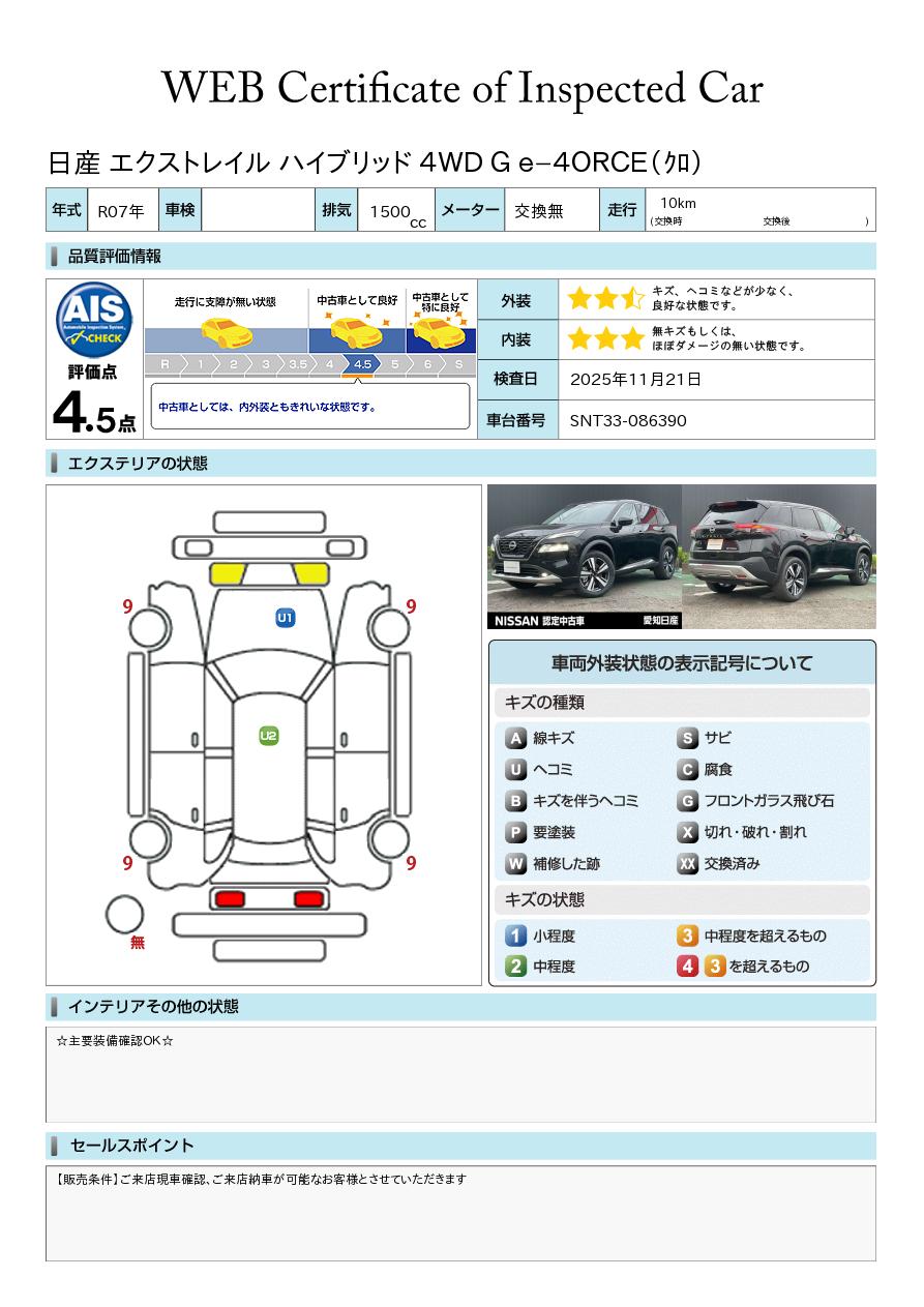 エクストレイル 1500cc 1.5 X e-4ORCE 90周年記念車 4WD 当社社用車UP・12.3インチメーカーナビ・全