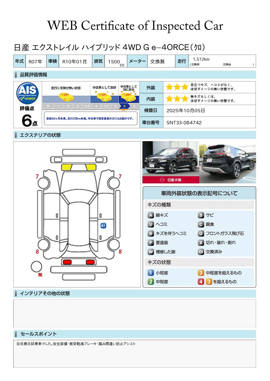 1.5 G e-4ORCE 4WD 当社元試乗車&NissanConnectナビ&ナッバ