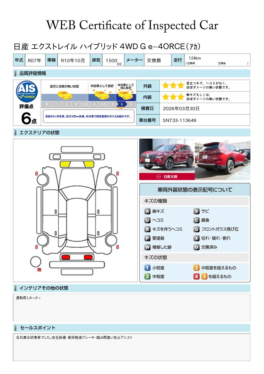 「車両状態証明書」は、査定協会監修のプロの検査員が公正かつ確かな基準で検査した”安心の証”です。