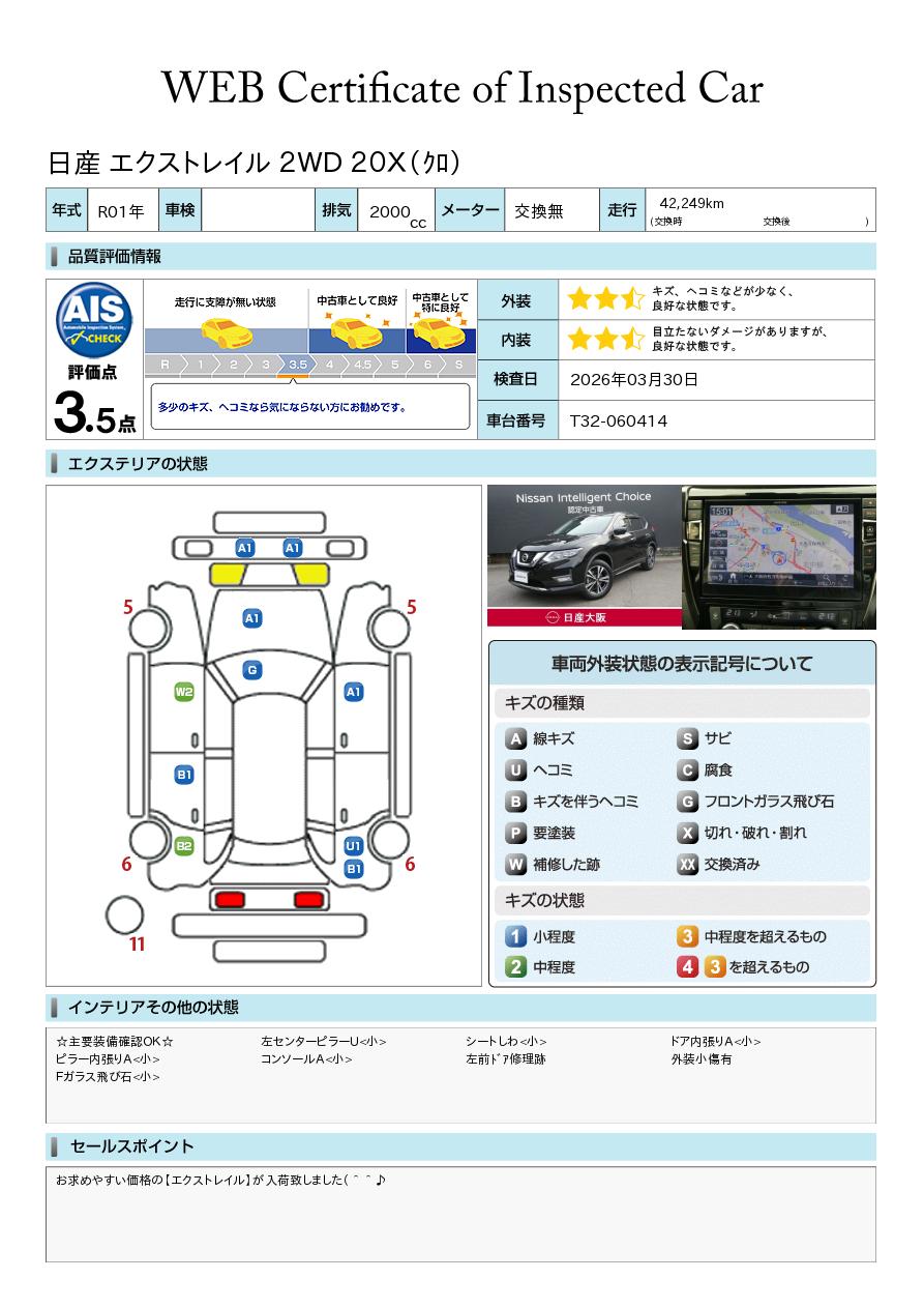 お求めやすい価格の【エクストレイル】が入荷致しました(^^♪お支払い総額は大阪府内での基本お見積もりです。他府県登録も可能ですのでお気軽にお問い合わせください。