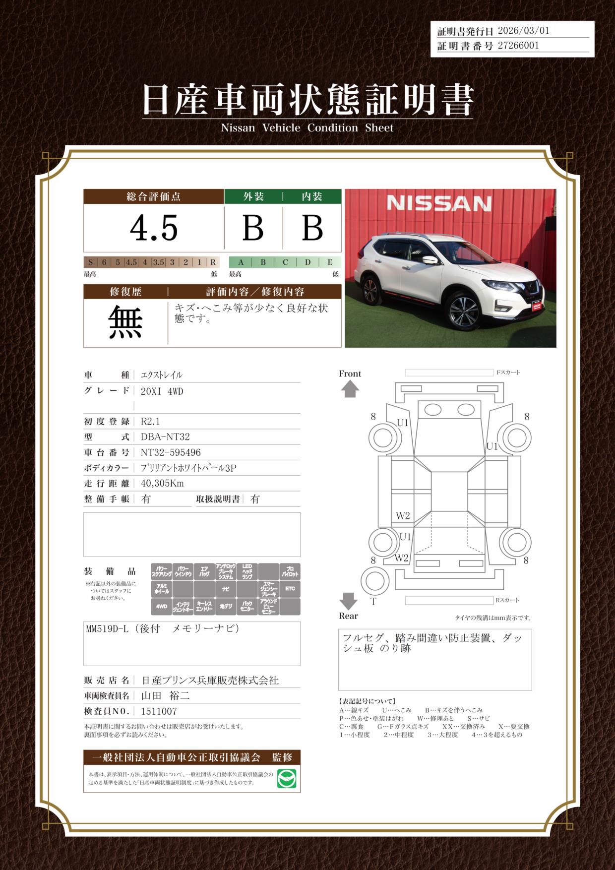 現状括弧書き内の年月まで車検有効期限が残っていますが、ご成約時に新しく車検を取り直します。なお取り直しの費用は車両価格に含まれています。
