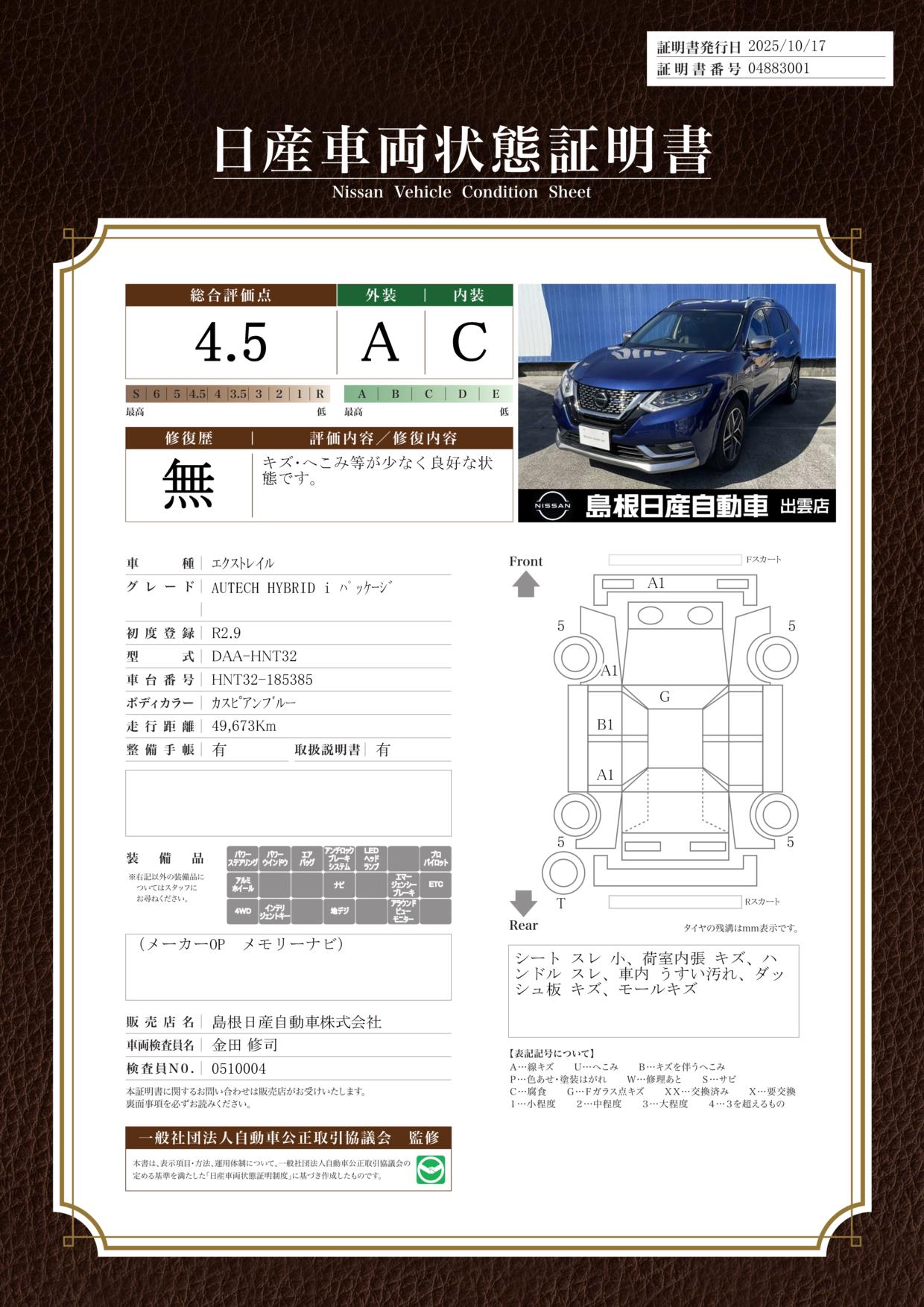エクストレイル 2000cc 2.0 AUTECH iパッケージ ハイブリッド 4WD メーカーナビ/ETC/パーキングアシスト