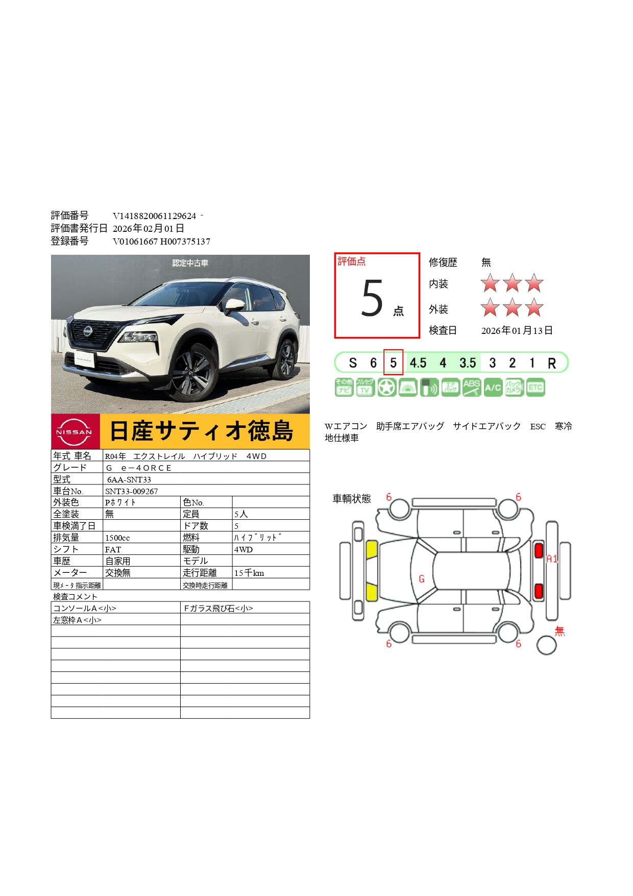 現状括弧書き内の年月まで車検有効期限が残っていますが、ご成約時に新しく車検を取り直します。なお取り直しの費用は車両価格に含まれています。