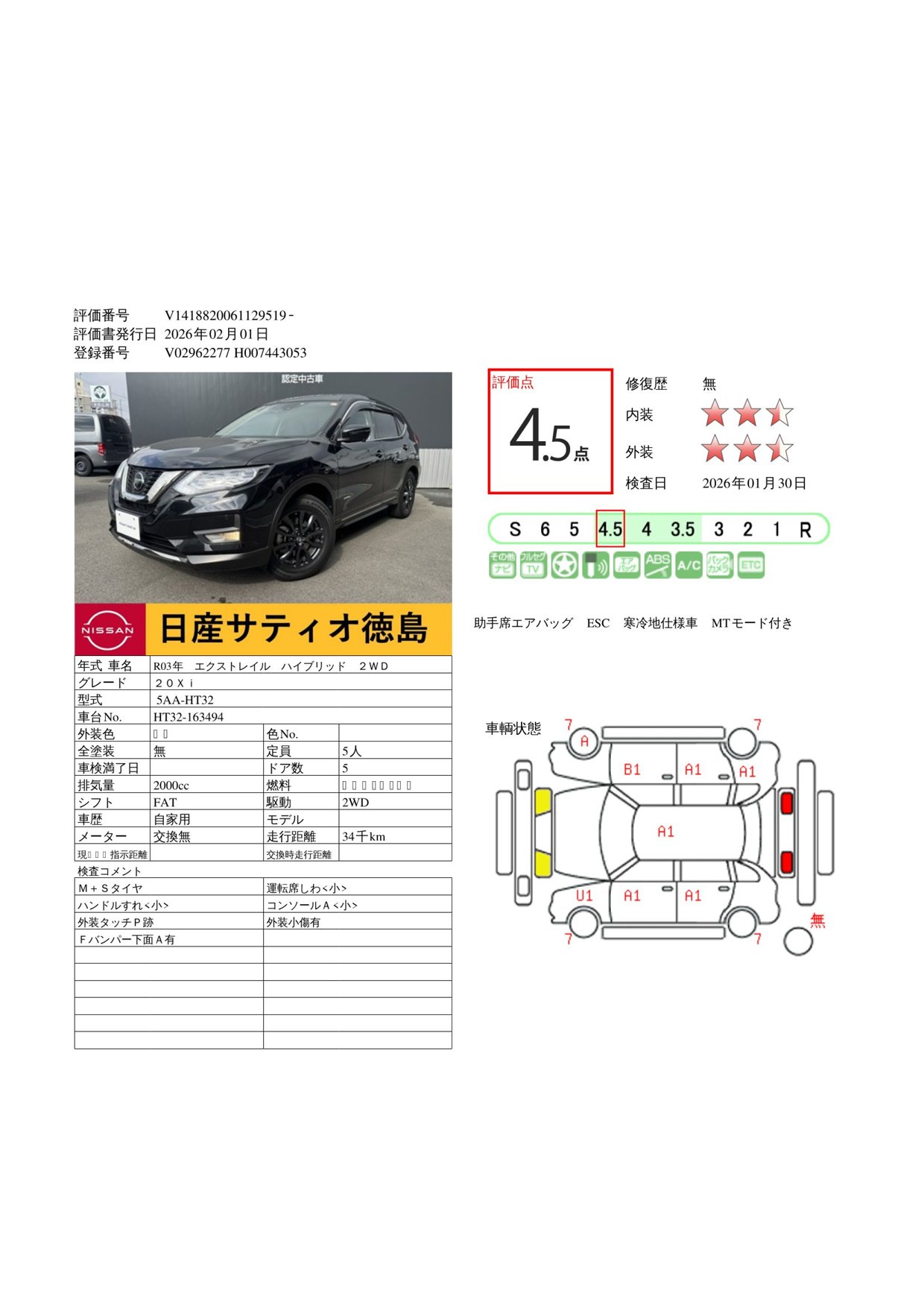 現状括弧書き内の年月まで車検有効期限が残っていますが、ご成約時に新しく車検を取り直します。なお取り直しの費用は車両価格に含まれています。