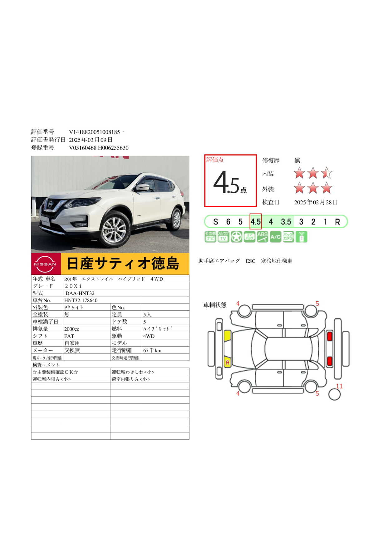 R1年式☆エクストレイルが入荷です☆ナビ☆アラウンドビューモニター☆ドラレコ☆ルームミラー☆