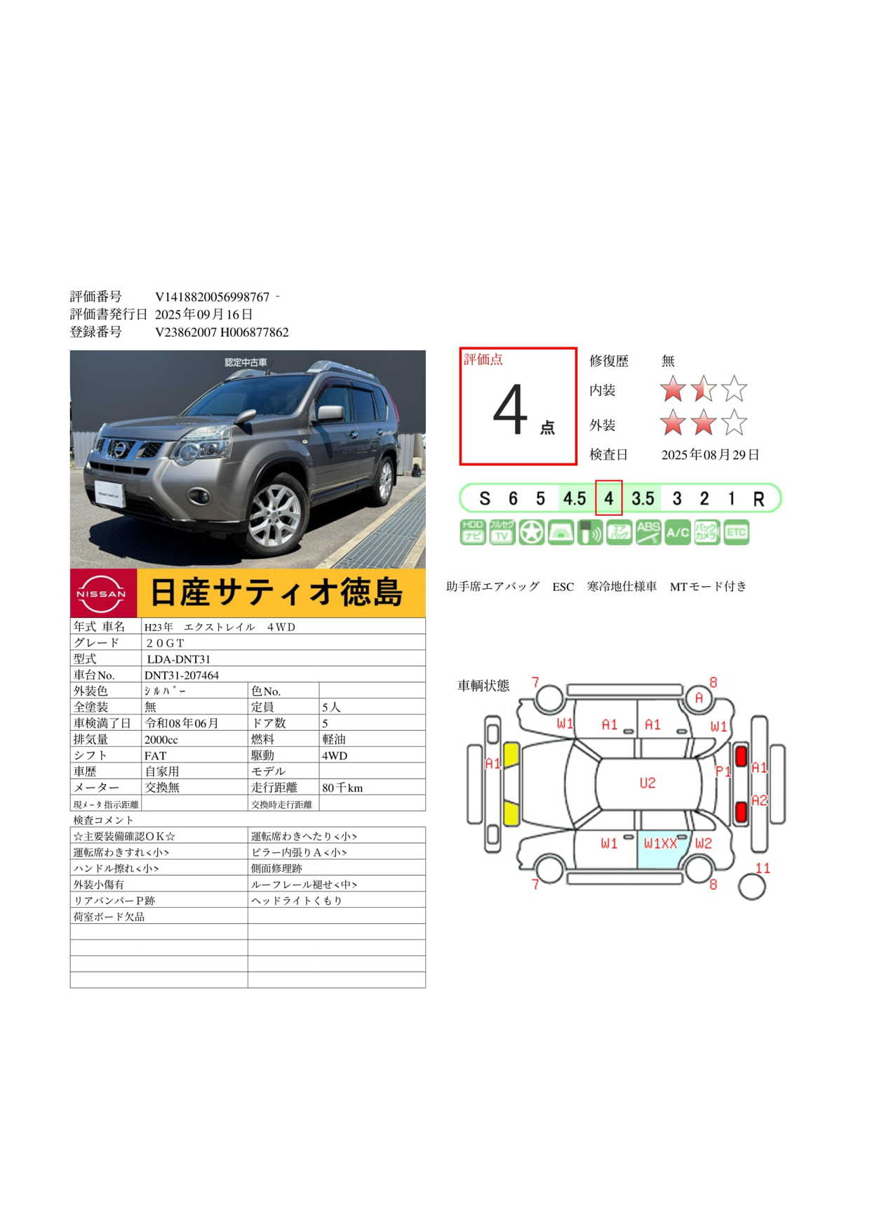 エクストレイル 2000cc 2.0 20GT ディーゼルターボ 4WD ルーフレール・大型電動ガラスサンルーフ
