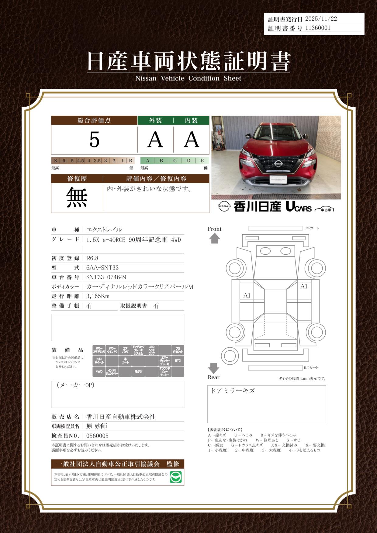 エクストレイル 1500cc 1.5 X e-4ORCE 90周年記念車 4WD 弊社社用車・禁煙車・ナビTV