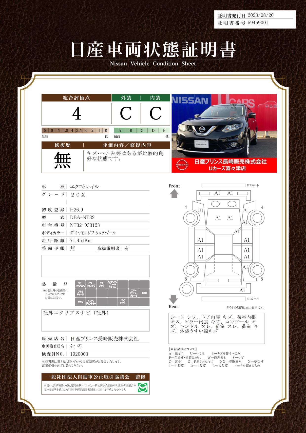 エクストレイル 2000cc 2.0 20X 2列車 4WD エマージェンシーブレーキ ナビ ドラレコ