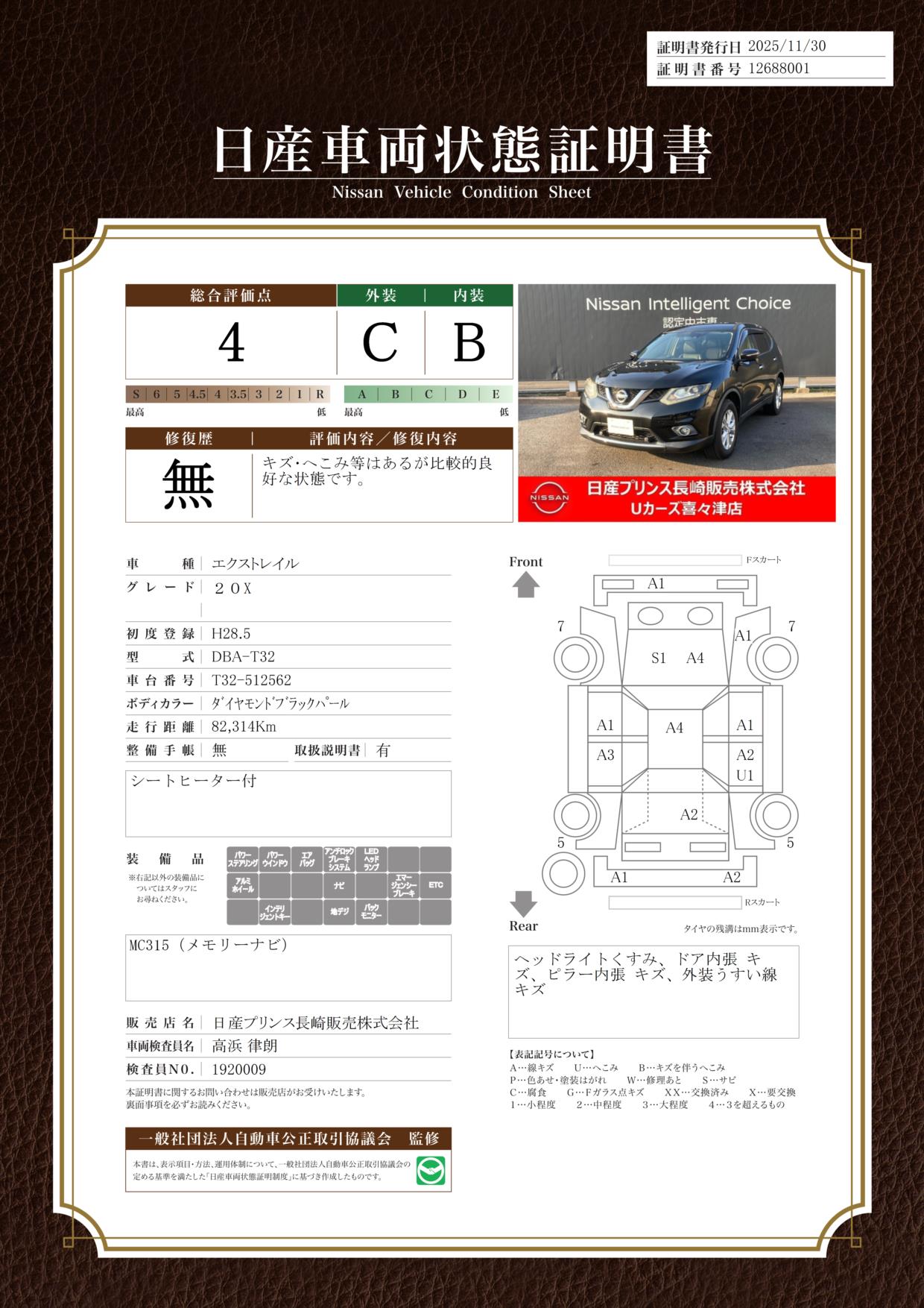 エクストレイル 2000cc 2.0 20X 2列車 4WD エマージェンシーブレーキ ナビ ドラレコ