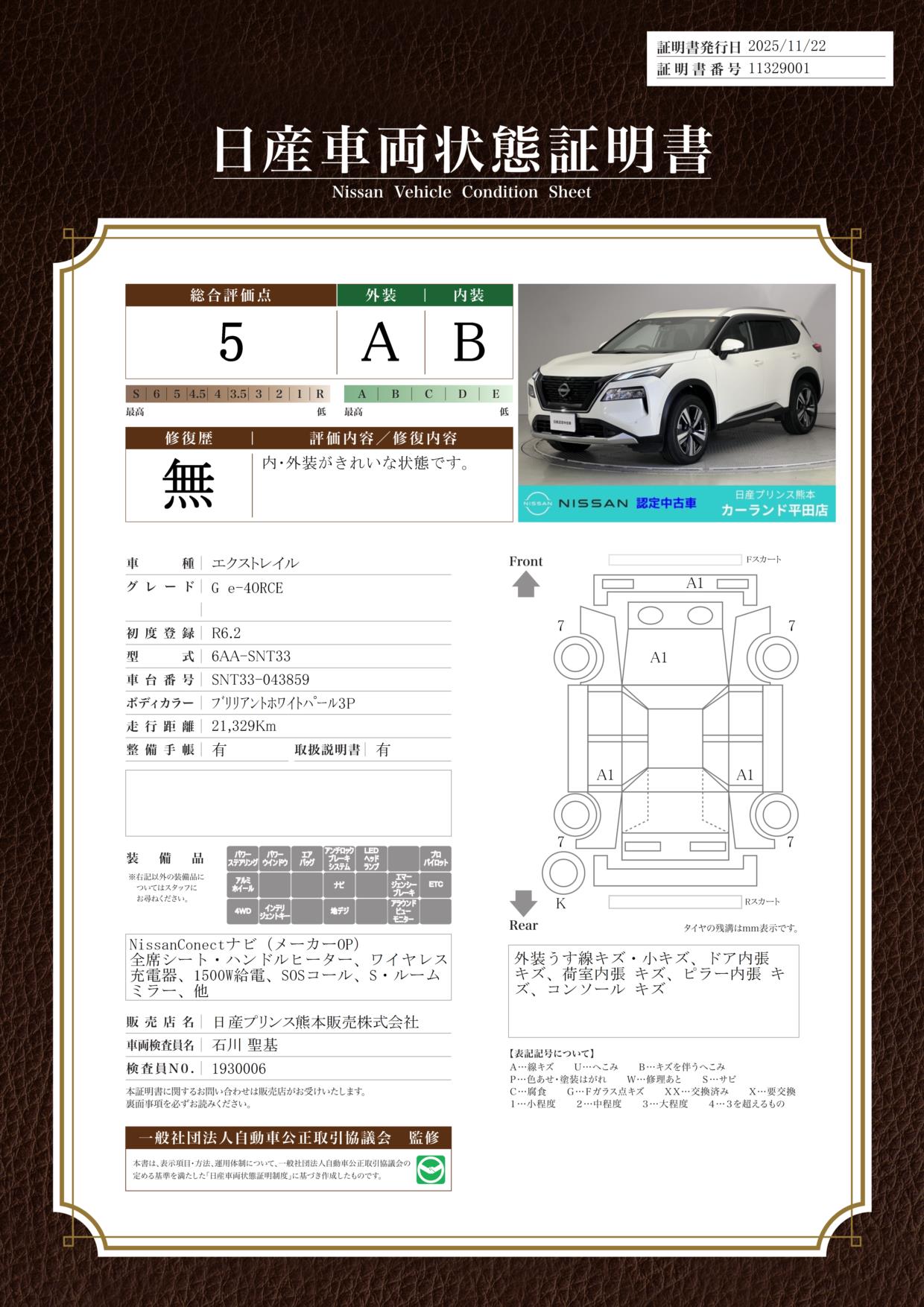 現状車検切れの状態ですが、ご成約時に新しく車検を実施します。車検費用は車両価格に含まれています。