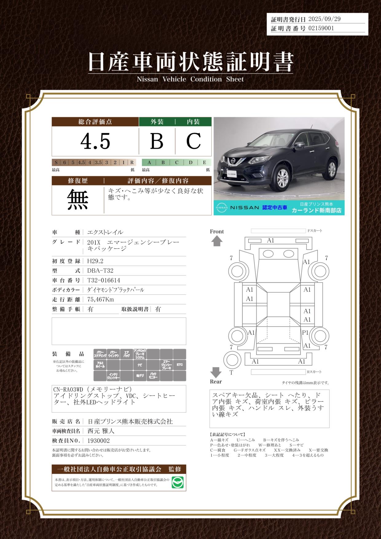 エクストレイル 2000cc 2.0 20Xi 2列車 前後ドラレコ ETC プロパイロット シートヒ