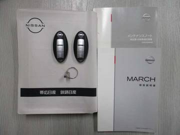 日産プレミアム認定中古車│走行距離が少ないパールホワイトカラーのマーチが入庫しました!衝突被害軽減ブレーキ横滑り防止装置アクセル踏み間違い防止装置定期点検記録簿