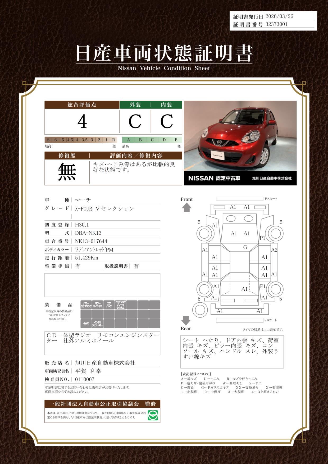 マーチ1.2 X FOUR Vセレクション 4WD CD