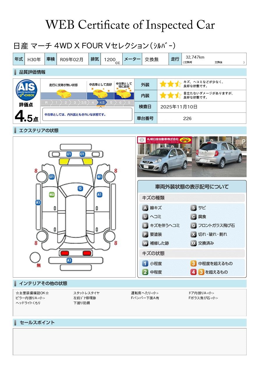 マーチ 1200cc 1.2 X FOUR Vセレクション 4WD ETC