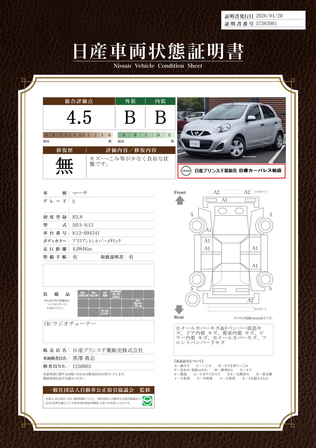 「車両状態証明書」は、査定協会監修のプロの検査員が公正かつ確かな基準で検査した”安心の証”です。