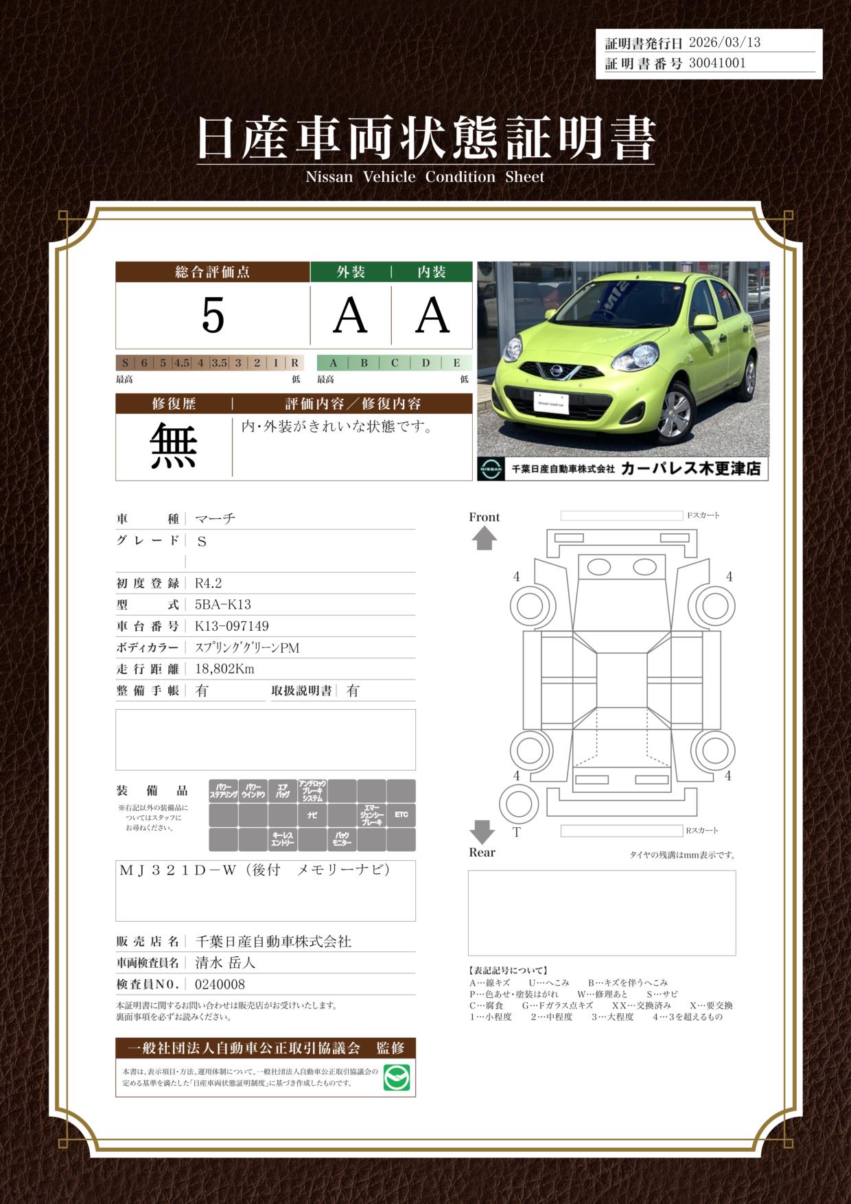 日産車両状態証明