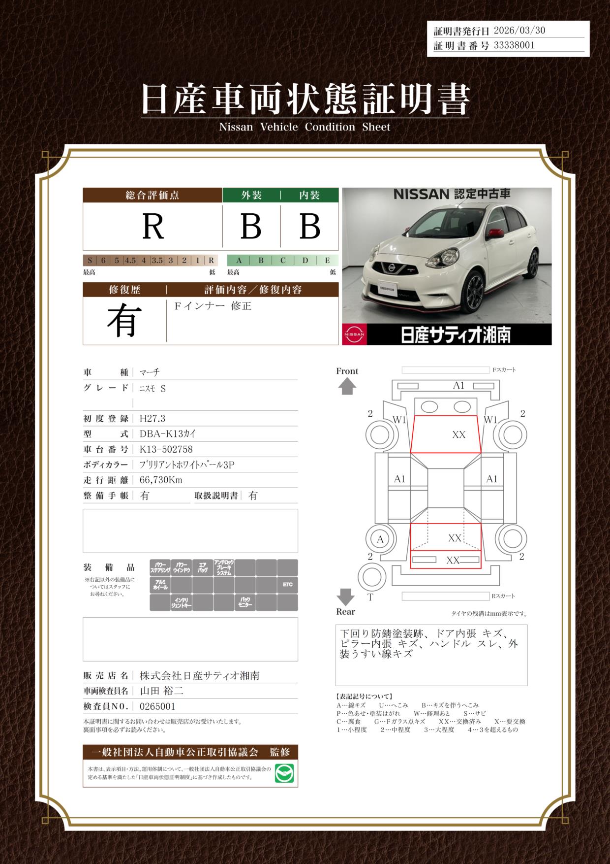 日産車両状態証明