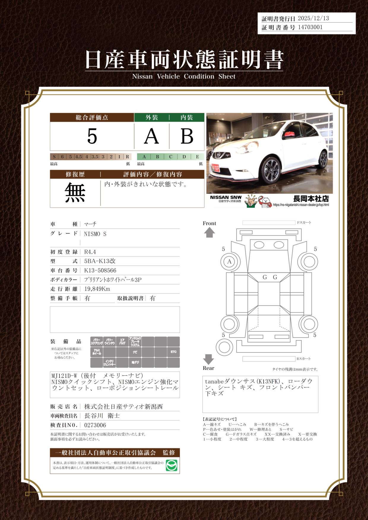 現状括弧書き内の年月まで車検有効期限が残っていますが、ご成約時に新しく車検を取り直します。なお取り直しの費用は車両価格に含まれています。