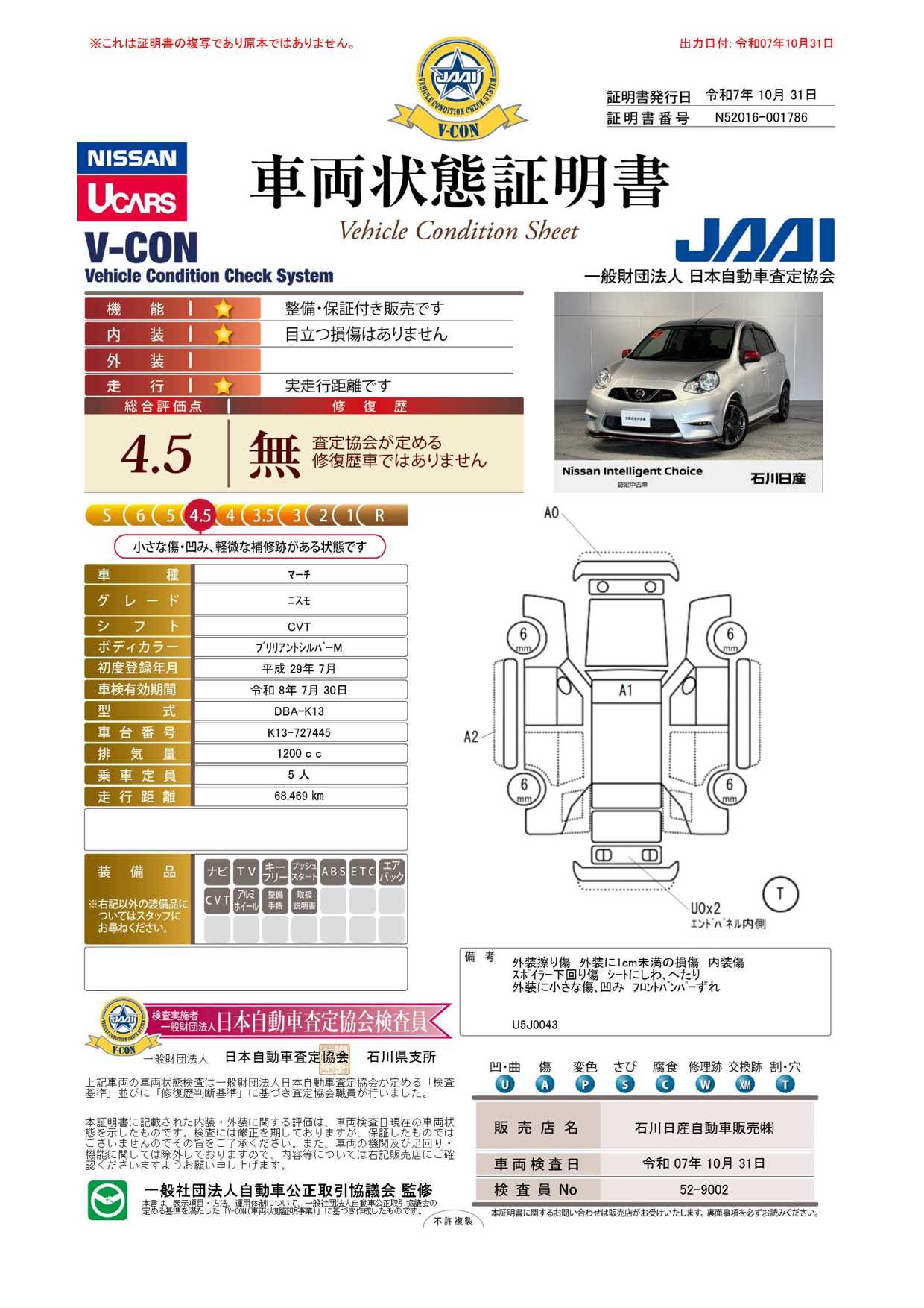 石川日産自動車販売株式会社の同じ中古車在庫一覧