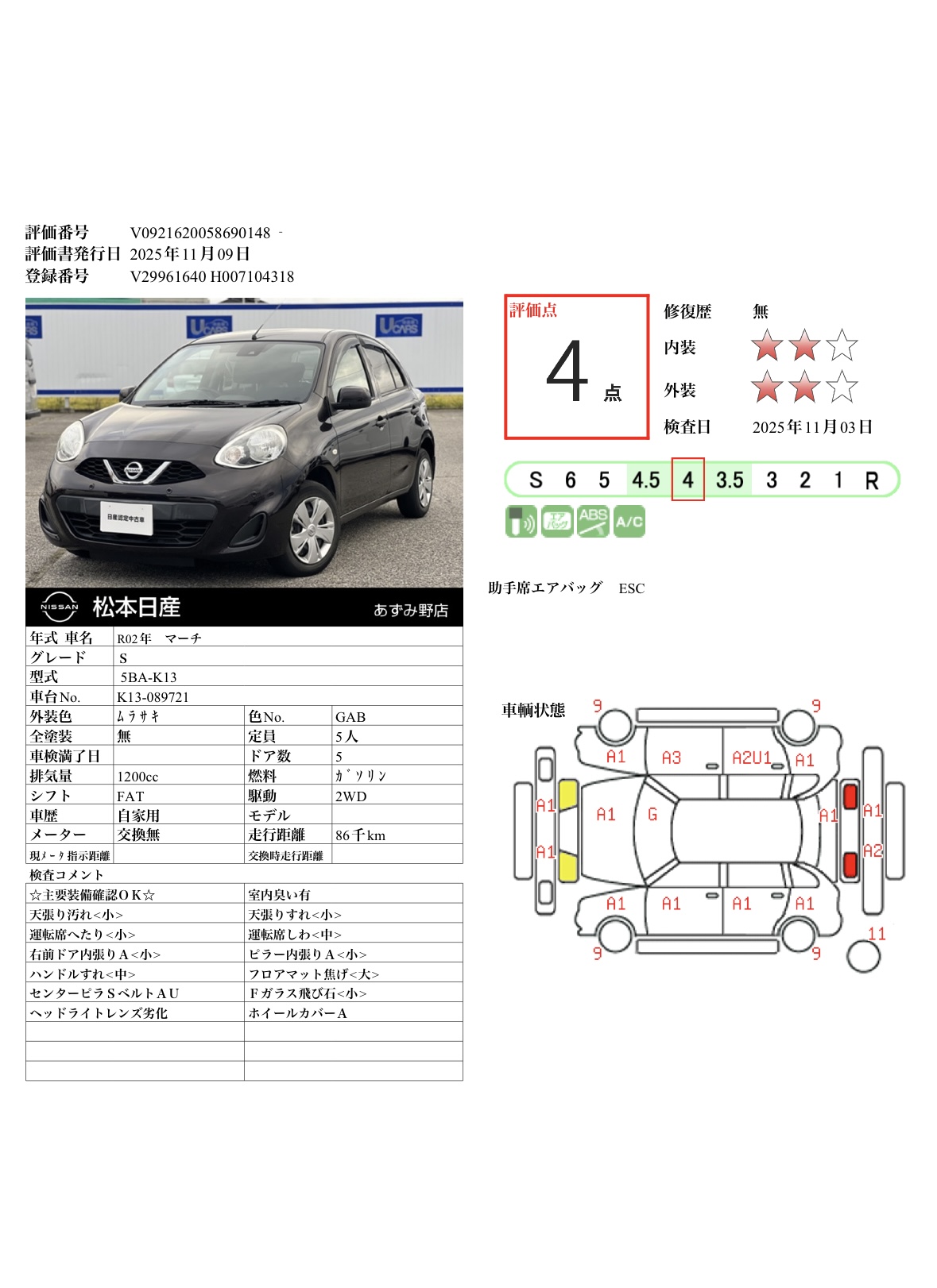 現状括弧書き内の年月まで車検有効期限が残っていますが、ご成約時に新しく車検を取り直します。なお取り直しの費用は車両価格に含まれています。