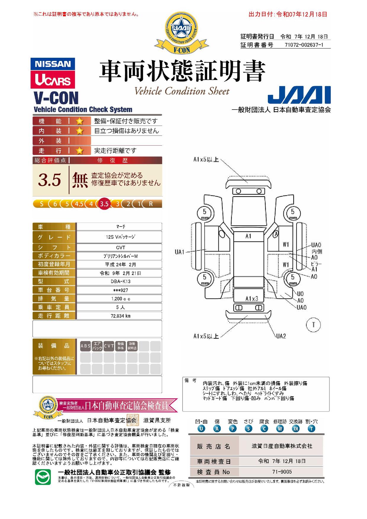現状括弧書き内の年月まで車検有効期限が残っていますが、ご成約時に新しく車検を取り直します。なお取り直しの費用は車両価格に含まれています。
