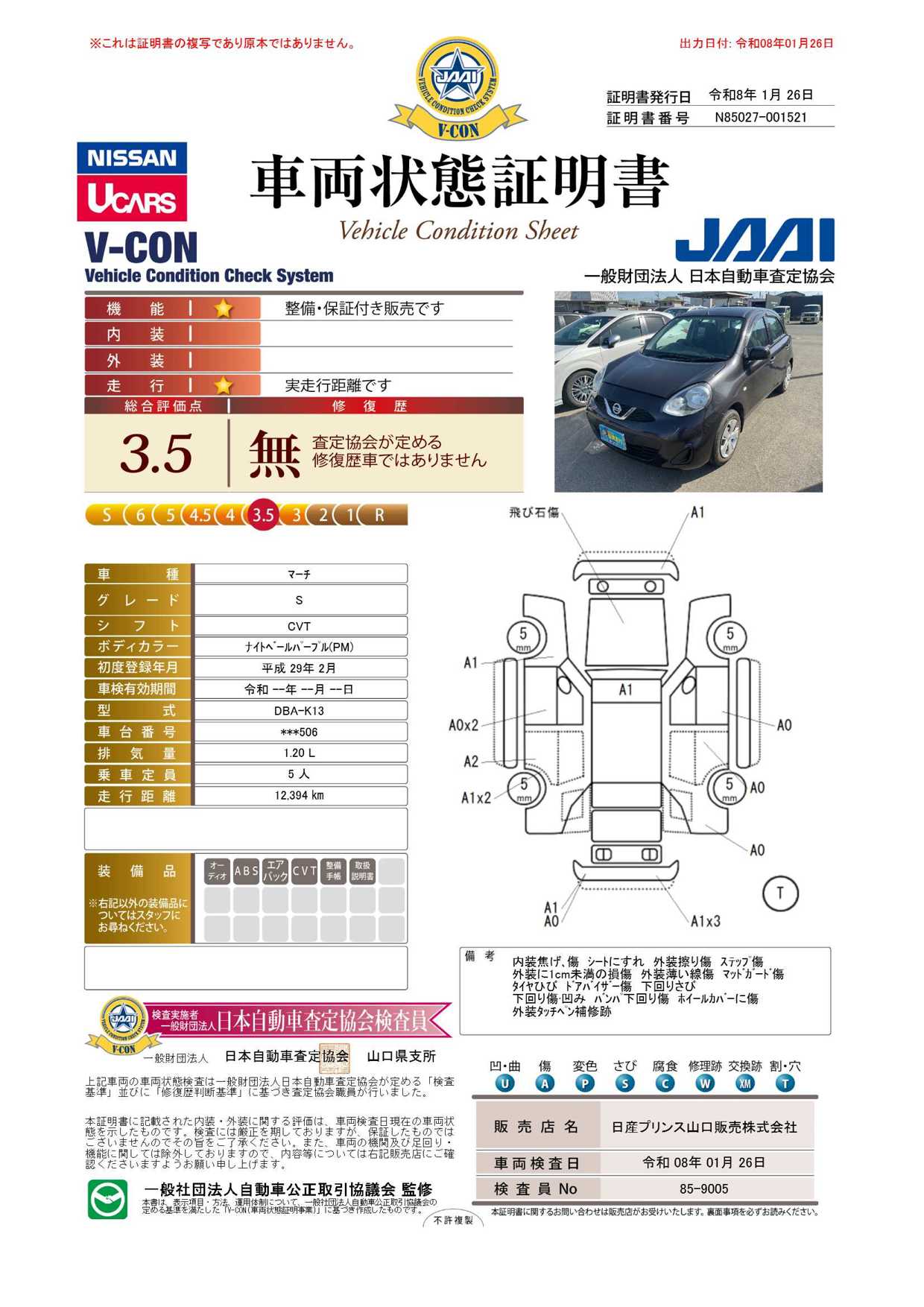 現状括弧書き内の年月まで車検有効期限が残っていますが、ご成約時に新しく車検を取り直します。なお取り直しの費用は車両価格に含まれています。