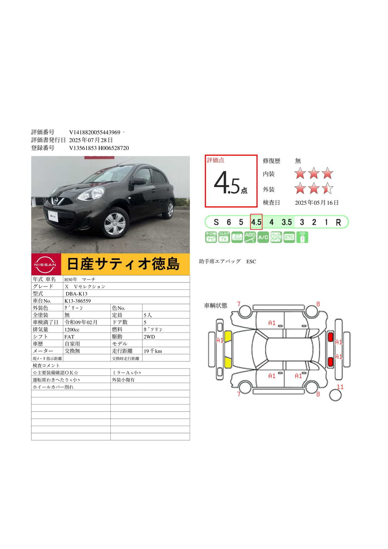 評価点イメージ : 中古車としては、内外装ともきれいな状態です。