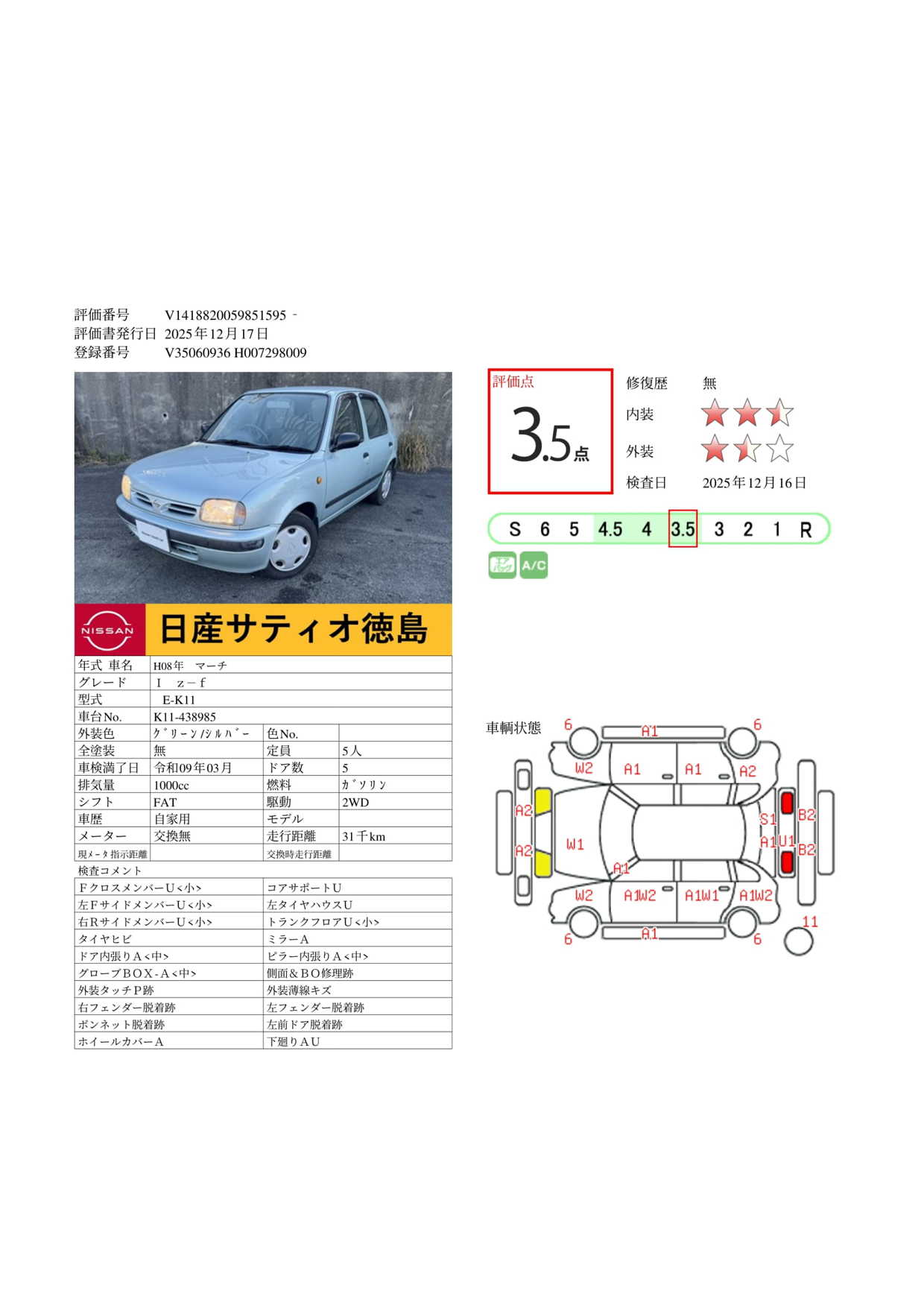 現状括弧書き内の年月まで車検有効期限が残っていますが、ご成約時に新しく車検を取り直します。なお取り直しの費用は車両価格に含まれています。