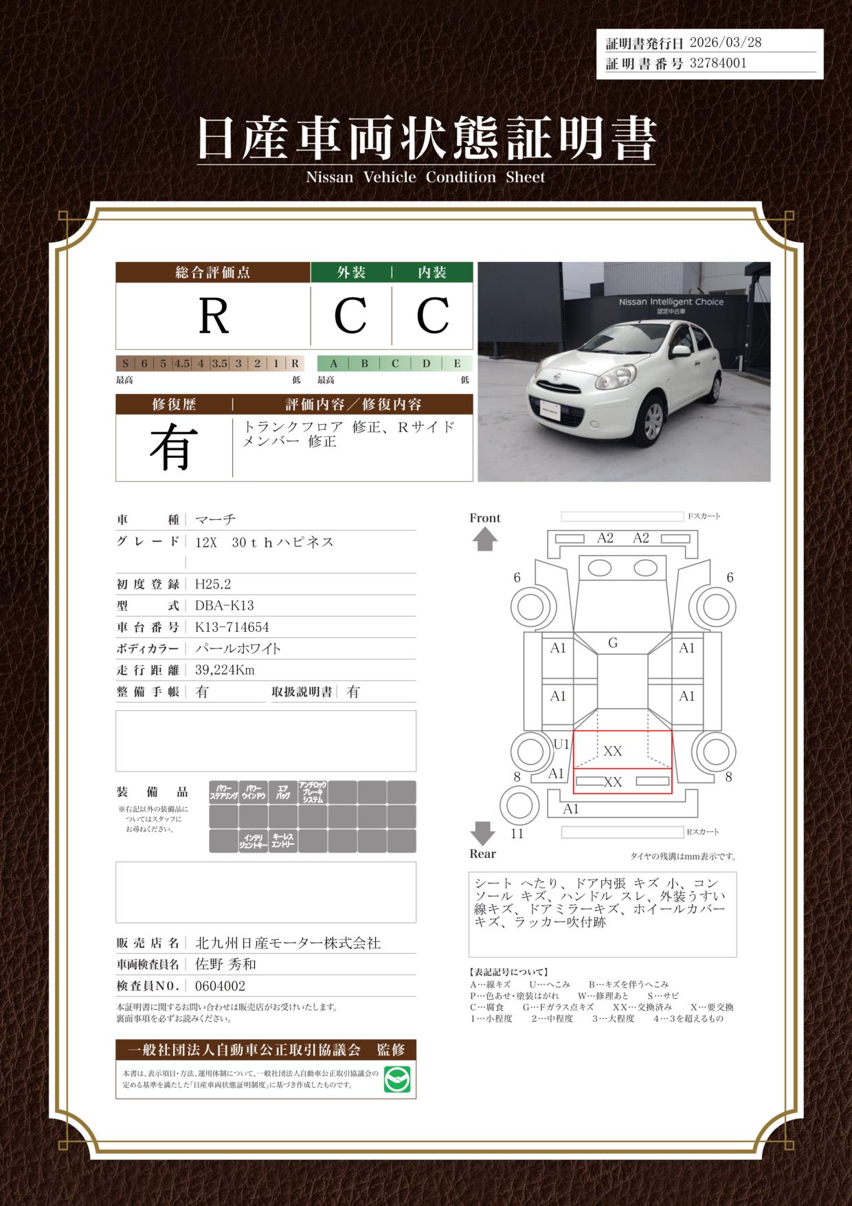 日産車両状態証明