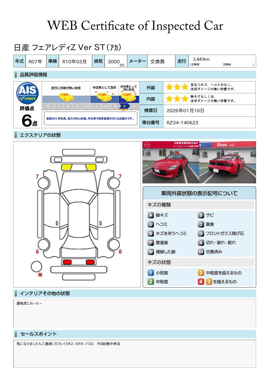 フェアレディZ 3000cc 3.0 バージョン ST 6速 コネクトナビ 雹害デント済