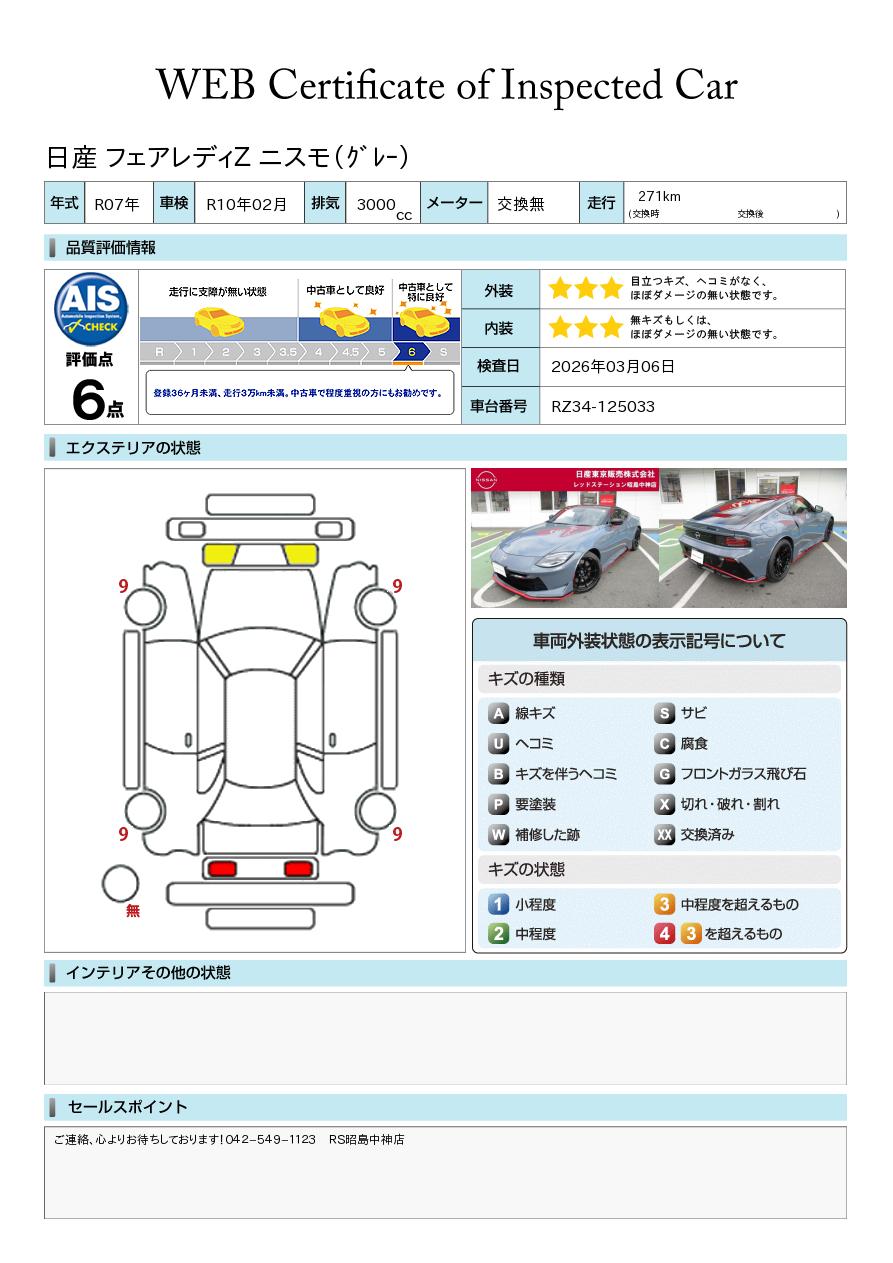 フェアレディZ 3000cc 3.0 バージョン S 6速 コネクトナビ 雹害デント済