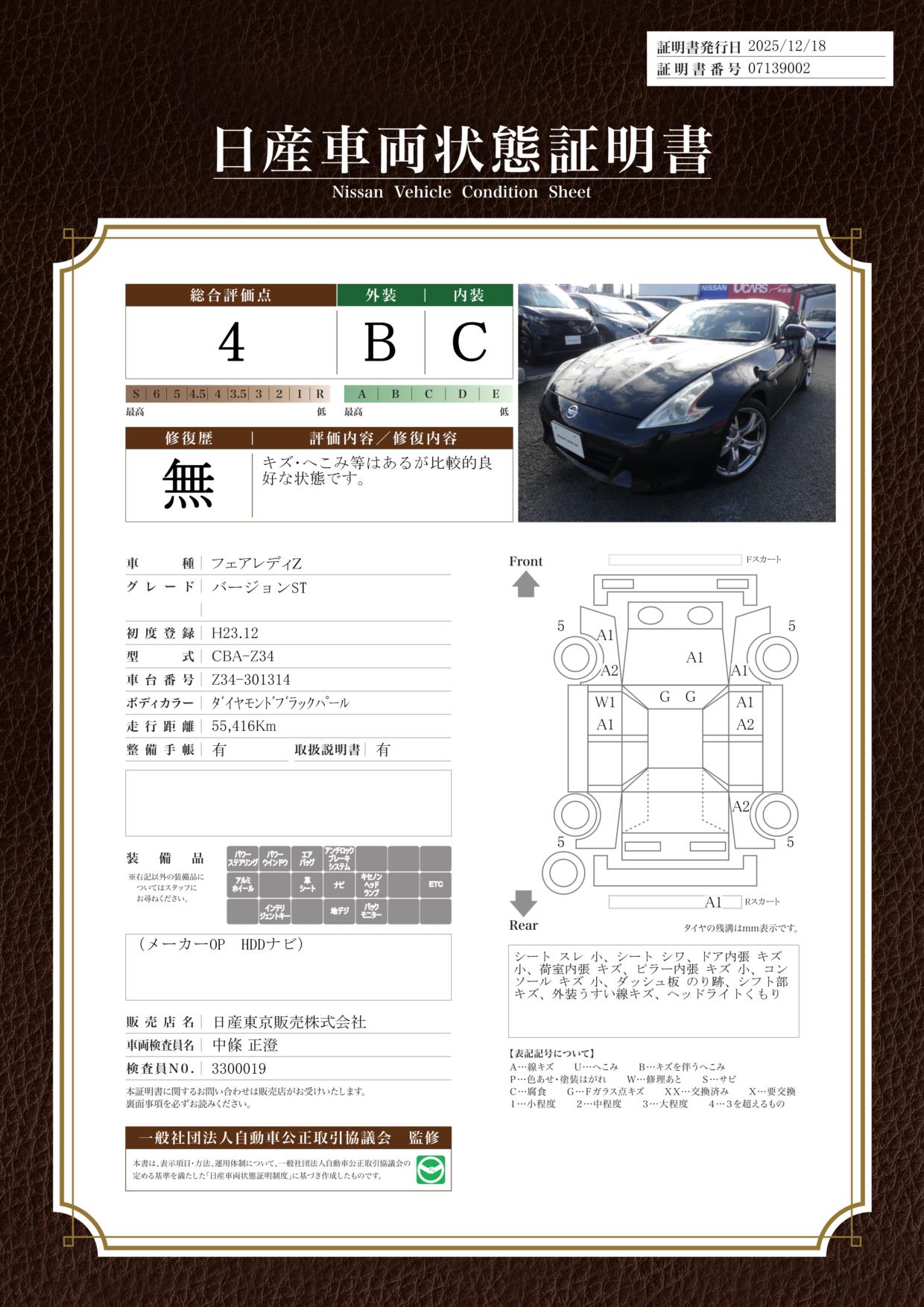 評価機関 : 日産車両状態証明