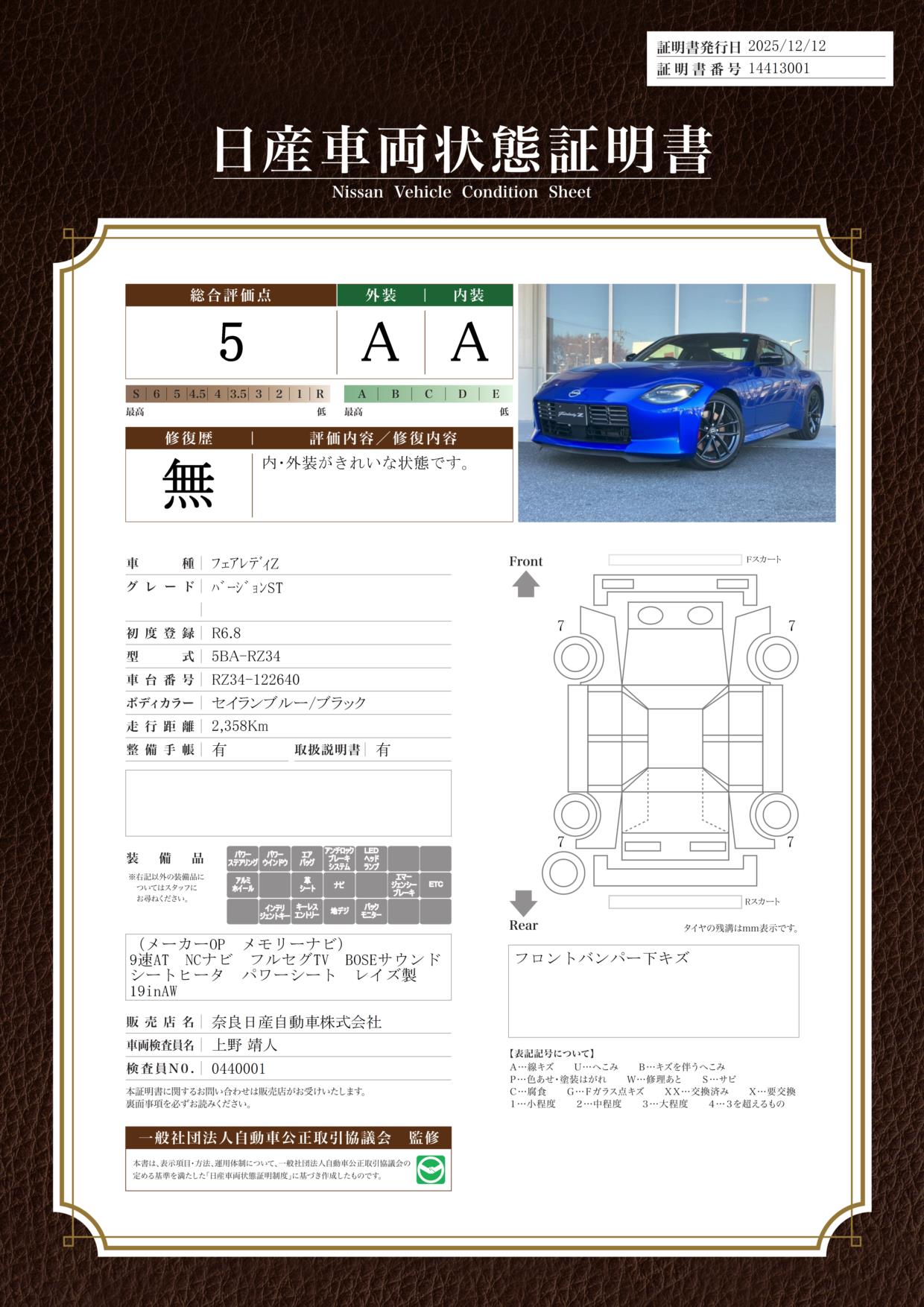 購入から2年間、走行距離無制限で保証。