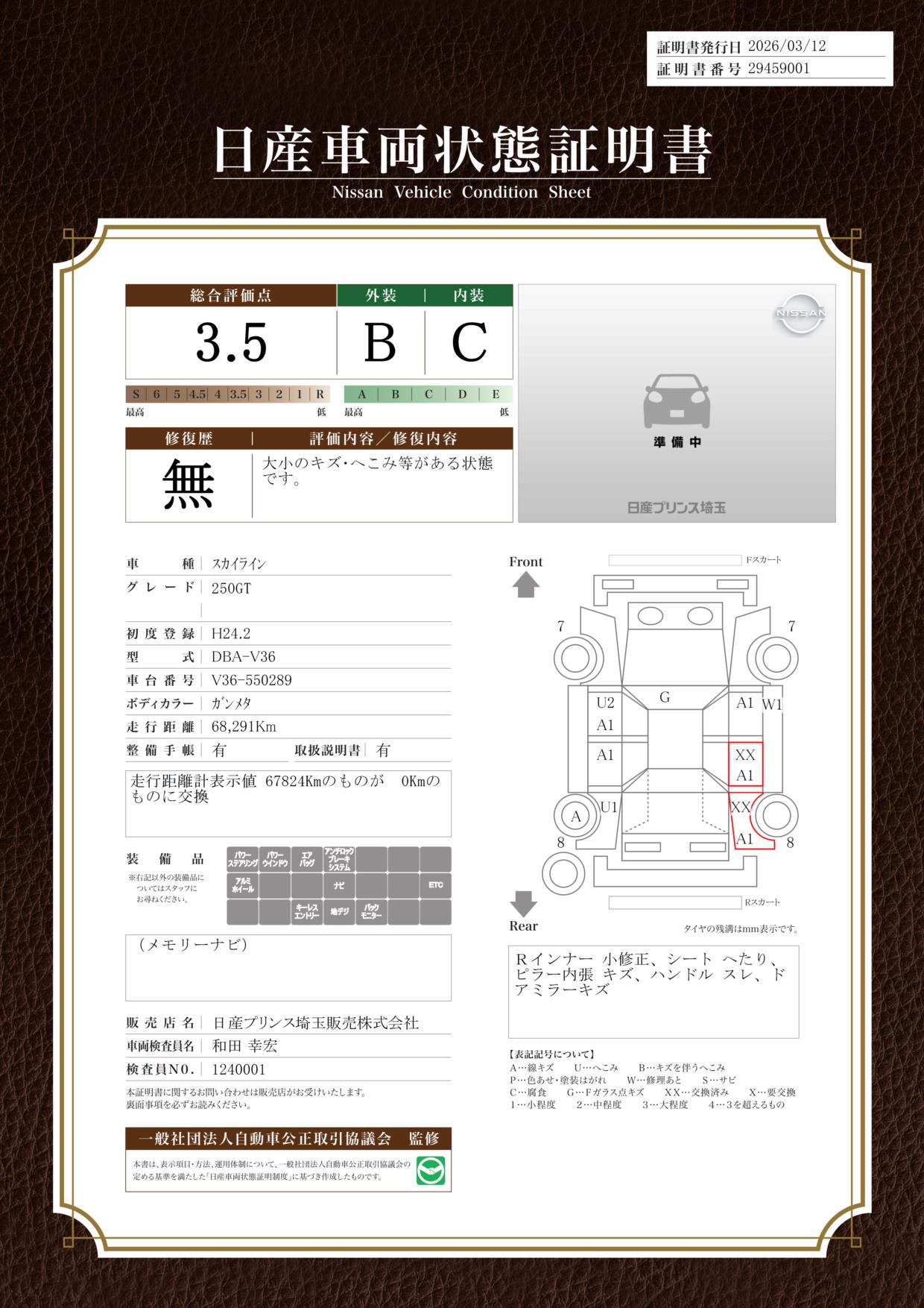 現状括弧書き内の年月まで車検有効期限が残っていますが、ご成約時に新しく車検を取り直します。なお取り直しの費用は車両価格に含まれています。
