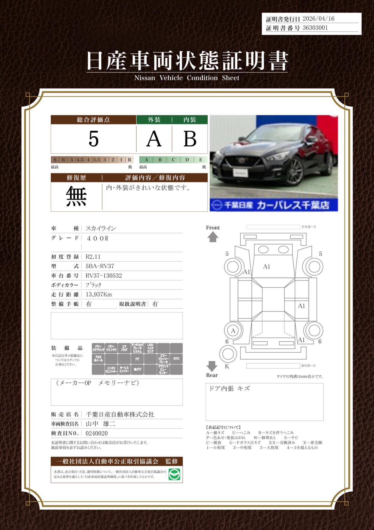 こちらのクルマは 「日産認定中古車」。 だから、4つの安心をお約束。
