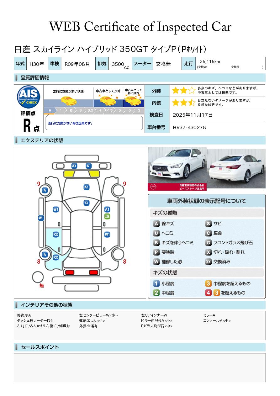 スカイライン 3500cc 3.5 350GT ハイブリッド タイプP NコネクトナビTV 黒本革シート Dレコ ETC