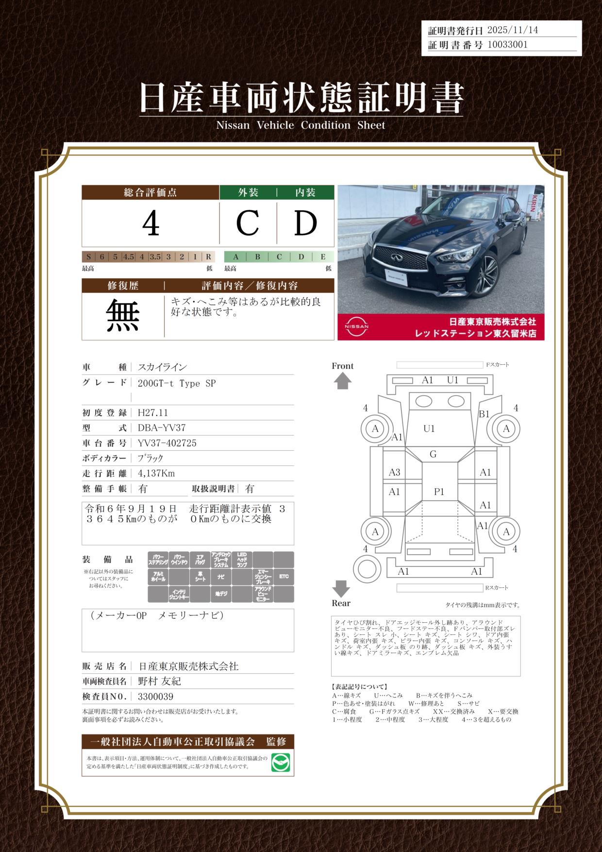 現状括弧書き内の年月まで車検有効期限が残っていますが、ご成約時に新しく車検を取り直します。なお取り直しの費用は車両価格に含まれています。