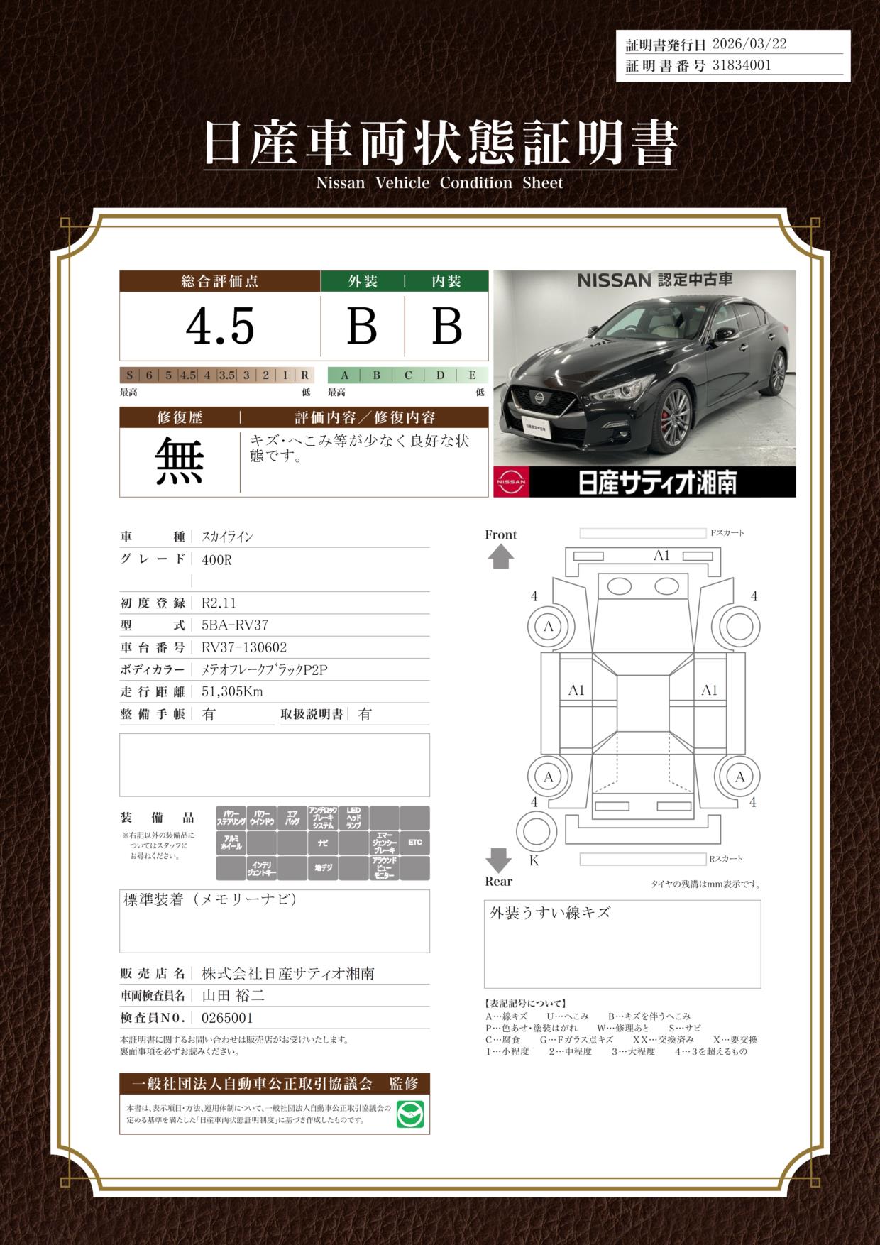 日産車両状態証明