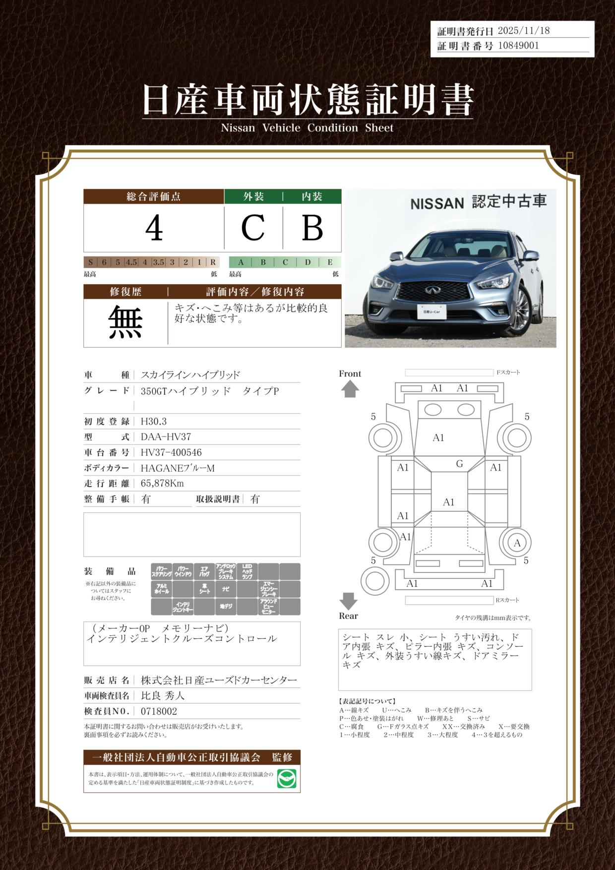 現状括弧書き内の年月まで車検有効期限が残っていますが、ご成約時に新しく車検を取り直します。なお取り直しの費用は車両価格に含まれています。