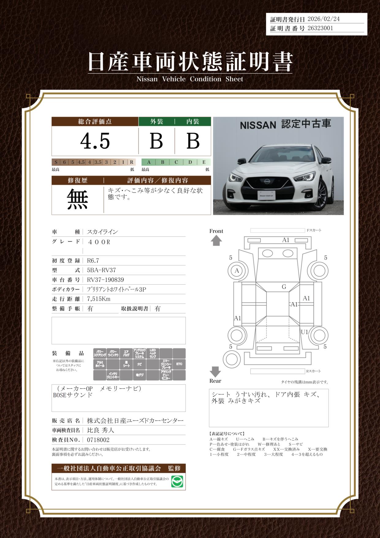 現状括弧書き内の年月まで車検有効期限が残っていますが、ご成約時に新しく車検を取り直します。なお取り直しの費用は車両価格に含まれています。