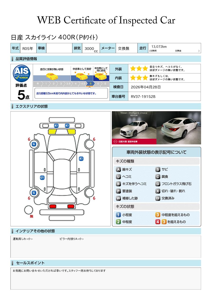 「車両状態証明書」は、査定協会監修のプロの検査員が公正かつ確かな基準で検査した”安心の証”です。
