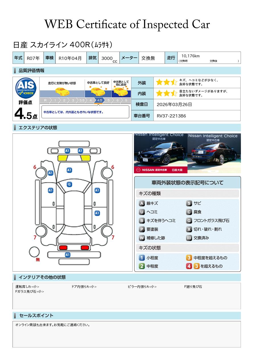 「車両状態証明書」は、査定協会監修のプロの検査員が公正かつ確かな基準で検査した”安心の証”です。