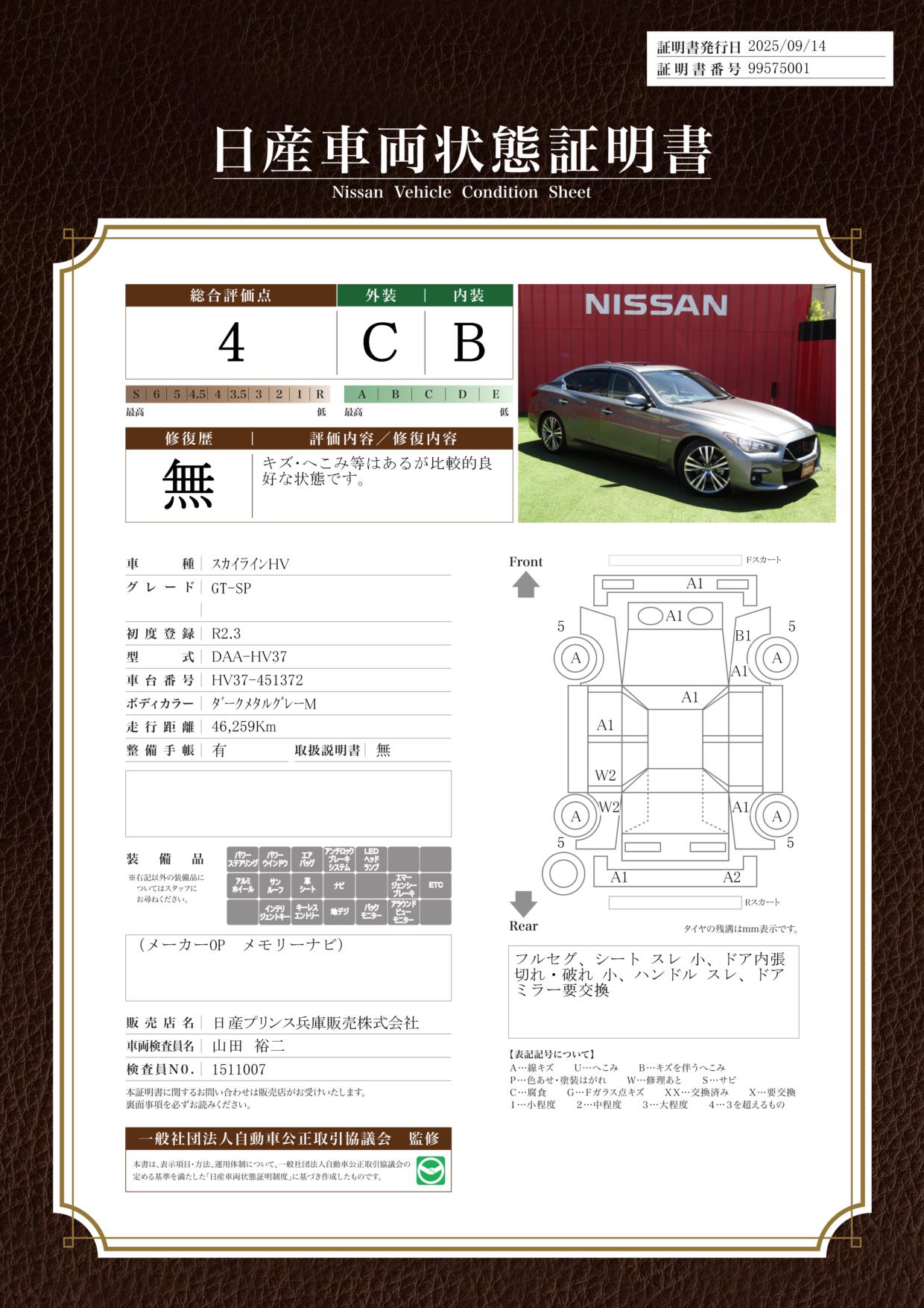 現状括弧書き内の年月まで車検有効期限が残っていますが、ご成約時に新しく車検を取り直します。なお取り直しの費用は車両価格に含まれています。